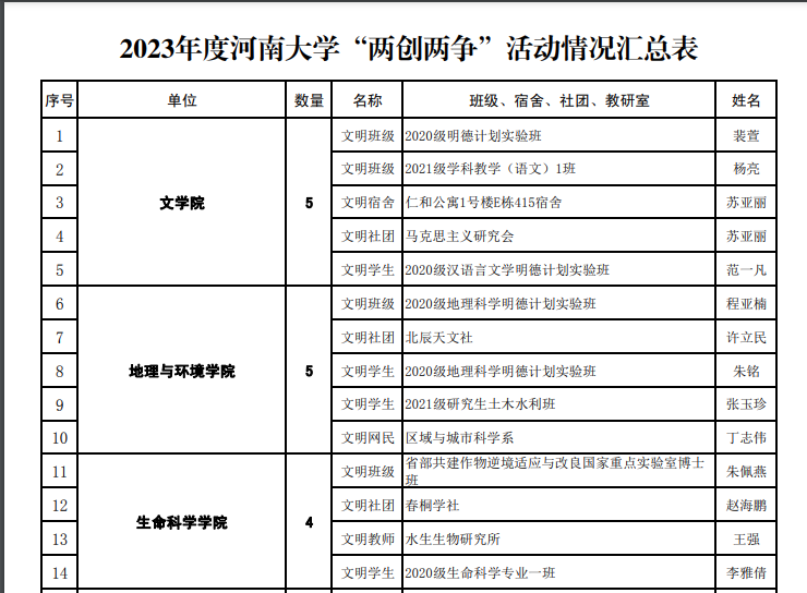 为深入学习贯彻党的二十大精神和习近平总书记关于弘扬雷锋精神的重要指示精神,不断提升广大师生思想觉悟、道德水准、文明素养和文明程度,根据《中共河南省委教育工作委员会河南省教育厅关于开展2023年度全省教育系统“两创两争”活动先进集体和先进个人推选工作的通知》(豫教工委〔2023〕36 号)精神,学校积极开展2023年度“两创两争”评选工作,对表现突出的先进集体和先进个人进行表彰,beat365中国官方网站在此次评选中荣获佳绩。