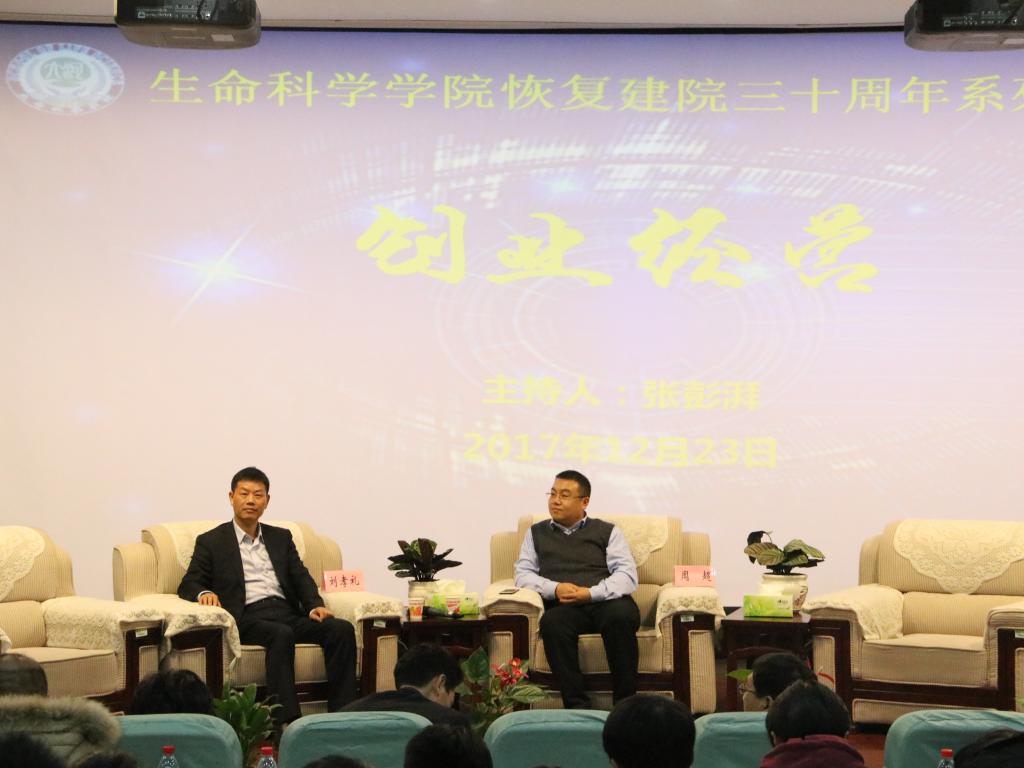 最后一个板块是创业经营,1988级校友、无锡熙源工程技术有限公司法人代表、总裁刘孝礼,1996级校友、濮阳泓天威药业有限公司总经理助理兼研发部经理、河南华中生物技术研究院院长周超两位企业家分享了他们的就业经历,讲述了当前一般工作岗位应具备的基本素质,引导大家应树立职业生涯规划意识,做好职业资本储备。