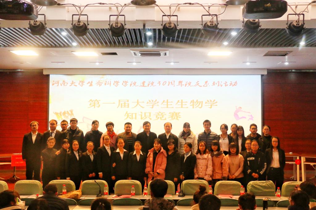 为进一步激发学生学习专业知识的热情,展现生科学子的专业素养,积极融入一流学科建设,11月30日下午,我院建院三十周年院庆系列活动之第一届大学生生物学知识竞赛在圆形报告厅三楼举行。学院党委书记赵东保,副院长王建军,党委副书记肖艳等领导班子成员莅临比赛现场,生物工程系主任杨玉生、生物科学系主任张彤、植物科学与技术系主任王子成、教师董美芳、基础实验中心主任赵海鹏、教师张要军等担任本次比赛的评委。学院400余名研究生及本科生观看了此次比赛。