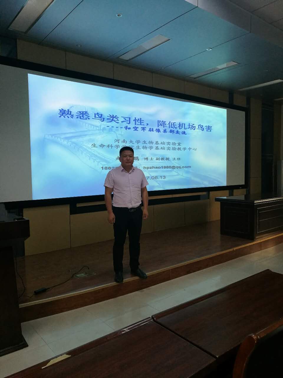 2017年6月13-14日,应解放军中部战区空军驻商某部的邀请,我院教师赵海鹏博士前往该部就如何降低机场鸟害进行授课。