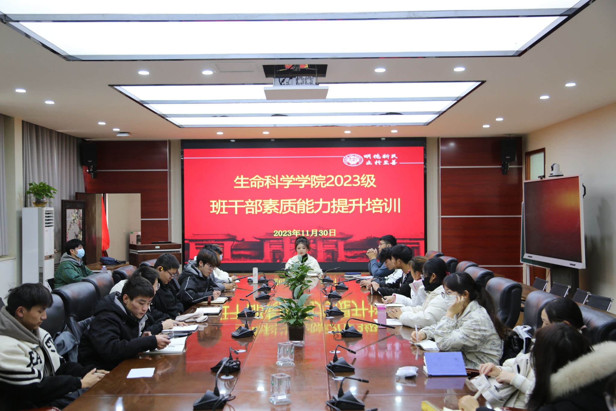 为加强学生干部队伍思想政治建设,切实提高学生干部的综合素质和服务能力,培养一支业务精、作风正、能力强的学生干部队伍,11月30日,beat365中国官方网站2023级本科生学生干部综合素质能力培训会在学院B201召开,2023级辅导员杨芯及全体学生干部参加。本次培训分为专题学习、经验分享、破冰之旅三个环节。